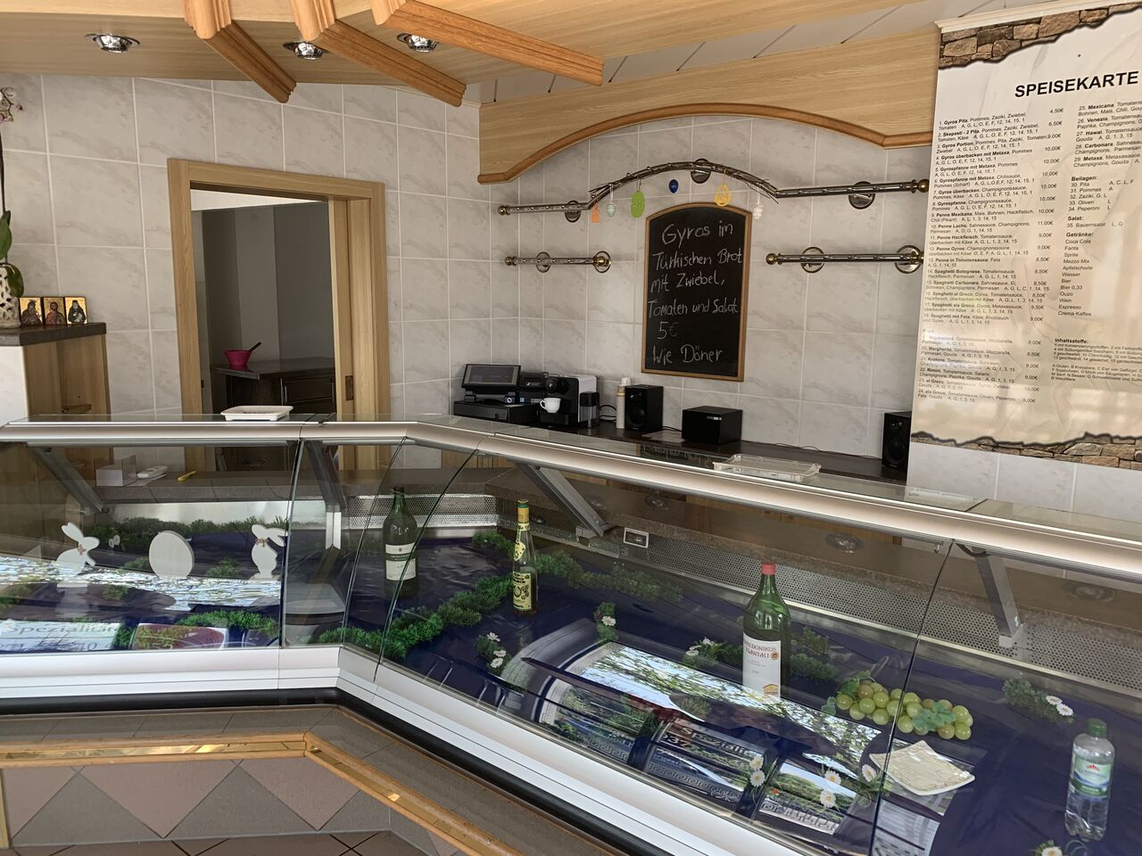 Wählen Sie aus unzähligen Gerichten der griechischen Küche und lassen Sie sich verwöhnen. Selbst für unsere anspruchsvollsten Besucher halten unsere Salatbar sowie unsere hausgemachte Küche unzählige Leckerbissen bereit. In unserem Hause gibt es schmackhafte Gerichte und Getränke, wie beispielsweise besonders leckere Nudel-Gerichte und frischen Kaffee – wir beraten Sie gerne. Kommen Sie gerne zum Mittagessen oder zum Abendessen bei uns vorbei!
